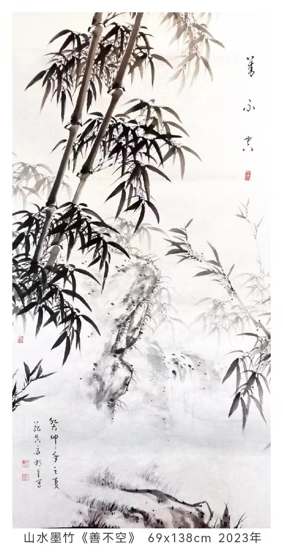 丁玉橙先生精心创作的一竹一牡丹两幅作品通过严格选送参加2023(巴黎-卢浮宫)国际艺术联创法国展,他的中国传统墨竹作品《善不空》荣获本次展览特别大奖,同时被主委会评定为展览专辑封面。